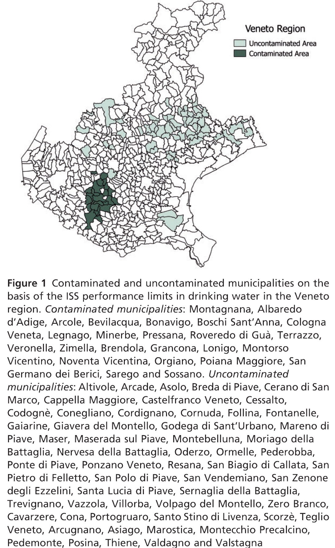 Le zone inquinate dalla lavorazione della Miteni, l’azienda che utilizzava i Pfas per produrre tessuti impermeabili, si estende per circa 200 chilometri quadrati e tocca 4 province venete; Vicenza in particolare, ma anche Verona, Padova e Rovigo. Un bacino di circa 800 mila residenti potenzialmente vittime della contaminazione.