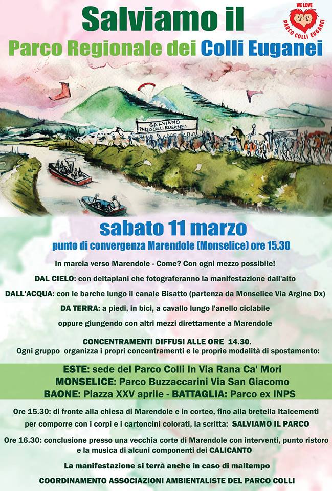 Anche per questo, domani, sabato 11 marzo, cittadini e ambientalisti si ritroveranno a Merendole alle ore 15,30, per manifestare tutti insieme. Lo slogan “Salviamo il parco dei Colli Euganei” è valido oggi, come ieri, come domani.